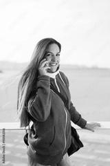 Urban sporty woman answering phone call after workout.
