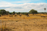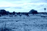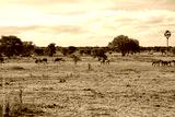 African wild zebras and ostriches in the African savannah.