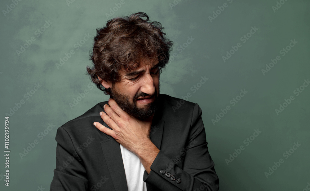 feeling ill with a sore throat and flu symptoms, coughing with mouth covered