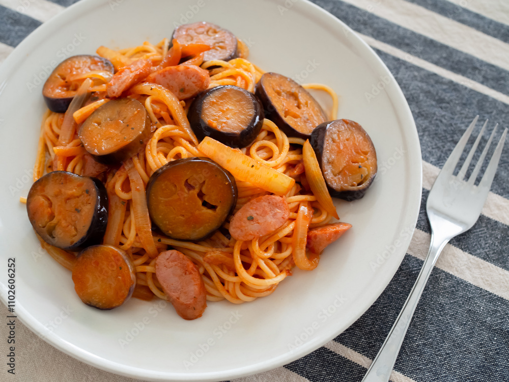 なすとウインナーのナポリタン