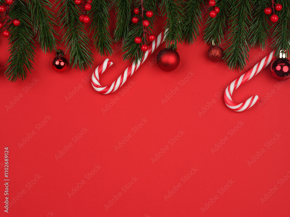red christmas background fir and balls