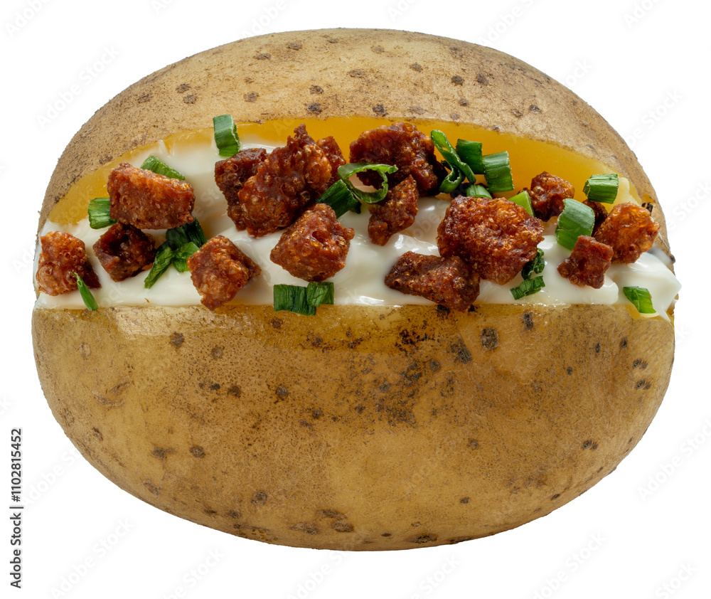Baked Mashed Potatoes with Cheese and Bacon isolated on white background, Roast Potatoes isolated on white background PNG file.