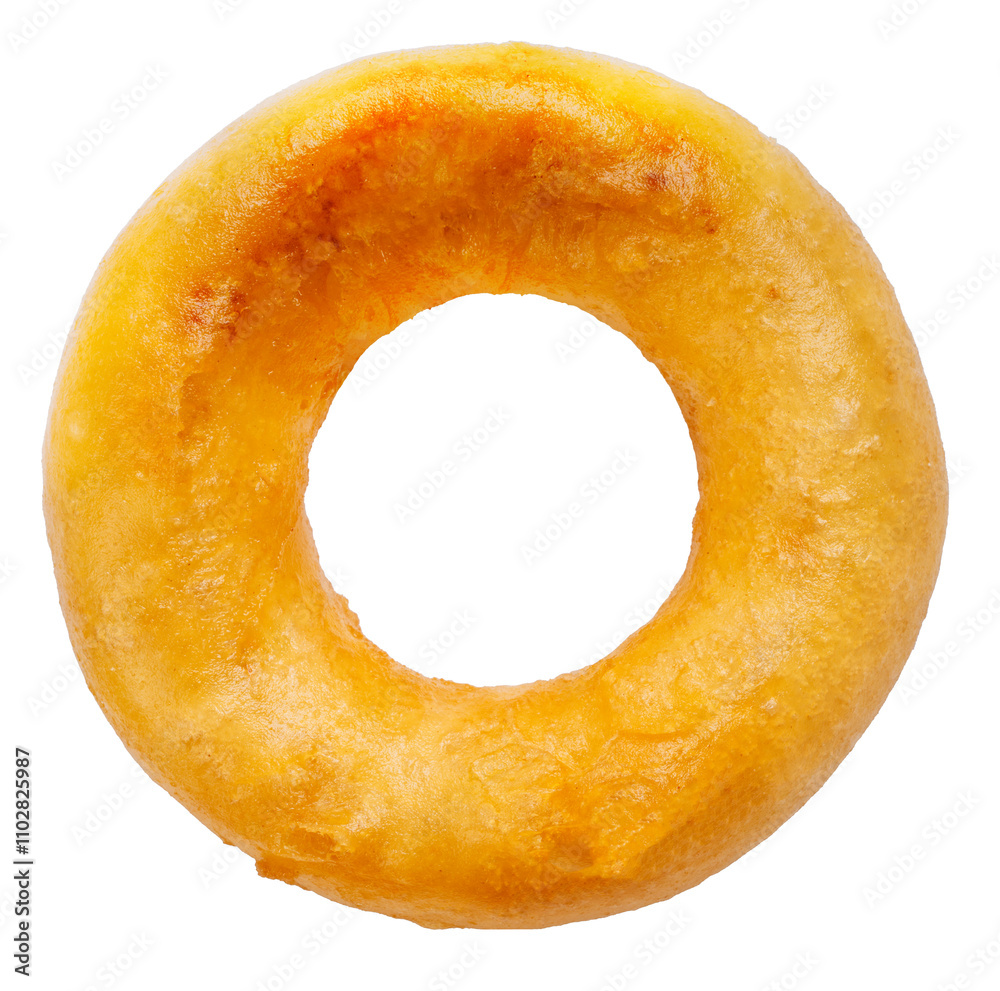 Onion ring isolated on white, Deep fried Onions isolated on white background PNG File.