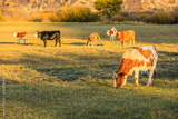 Cows grazing in meadow. Beautiful grassland pasture nature landscape in Inner Mongolia, China. Autumn landscape.
