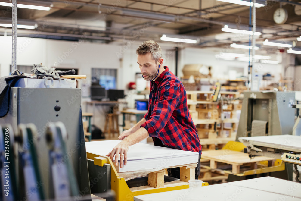 Man working in a printing press office