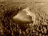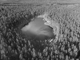Aerial View of a Beautiful, Tranquil Forest Lake Surrounded by Abundant Lush Greenery
