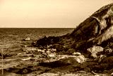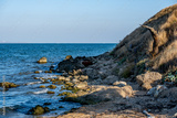 The rocky seashore. Cliffs on the coast.