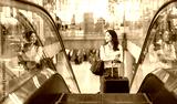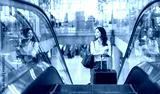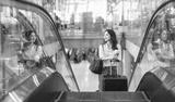Portrait of standing tourist woman passenger at international airport terminal for holidays travel