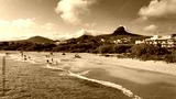 Relaxing beach day at Kenting Baishawan in Taiwan with scenic mountains and blue skies