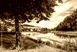 Reservoir on the dam wall at Diemelsee and the surrounding landscape. Nature at the Diemel Dam in the Sauerland.