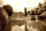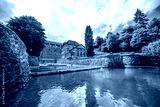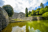 Dam wall at Diemelsee and the surrounding landscape. Diemel Dam in Sauerland. Historical building for water supply.