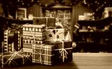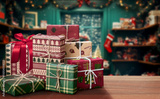 Colorful and Beautifully Wrapped Christmas Gifts on the christmas market