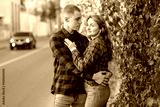 Romantic Autumn Embrace of a Stylish Couple Surrounded by Colorful Foliage