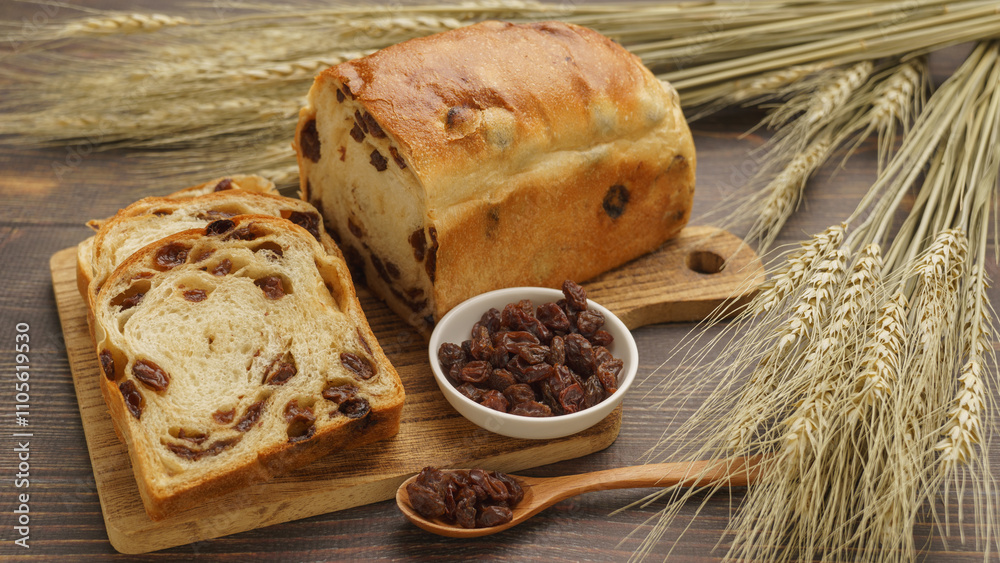 レーズンパン・イメージ|レーズンパンとレーズンと麦穂