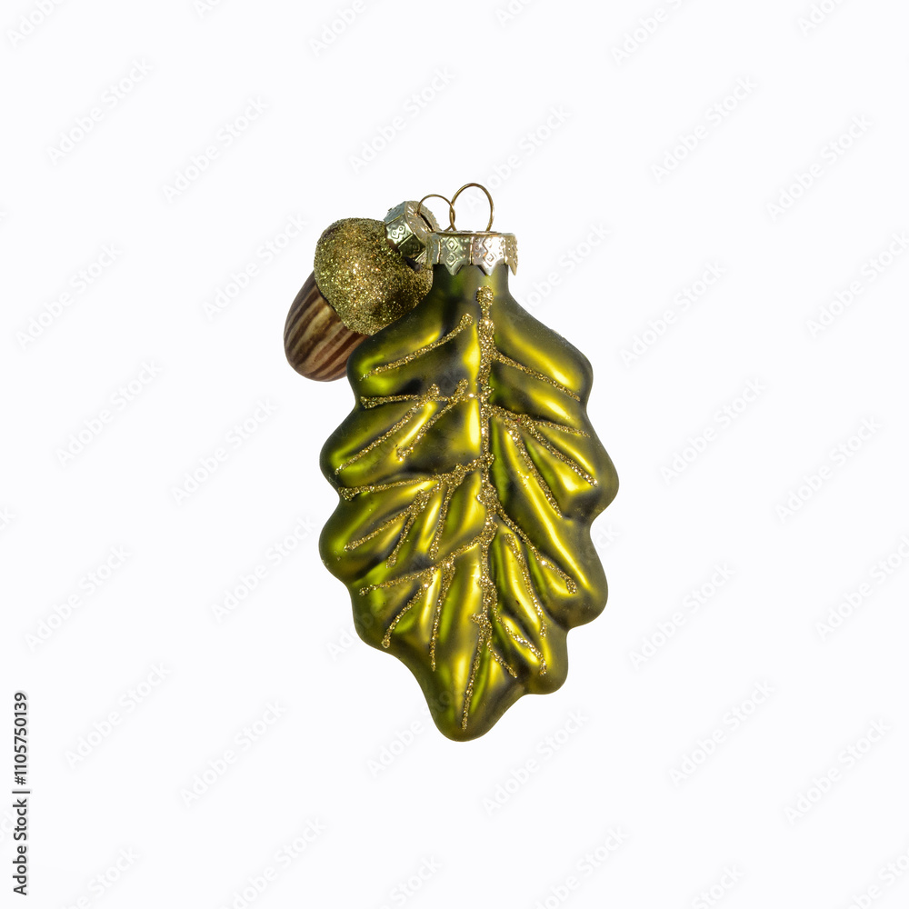 Glass Christmas tree toy in the form of an Acorn Leaf. Retro style