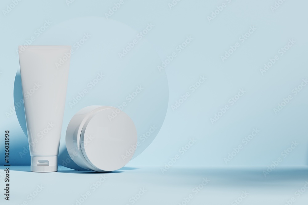 3d illustraion of cosmetic skin care beauty spa cream mockup, bathroom interior, medical healthcare treatment, fashion of makeup, bottle tube of packaging.