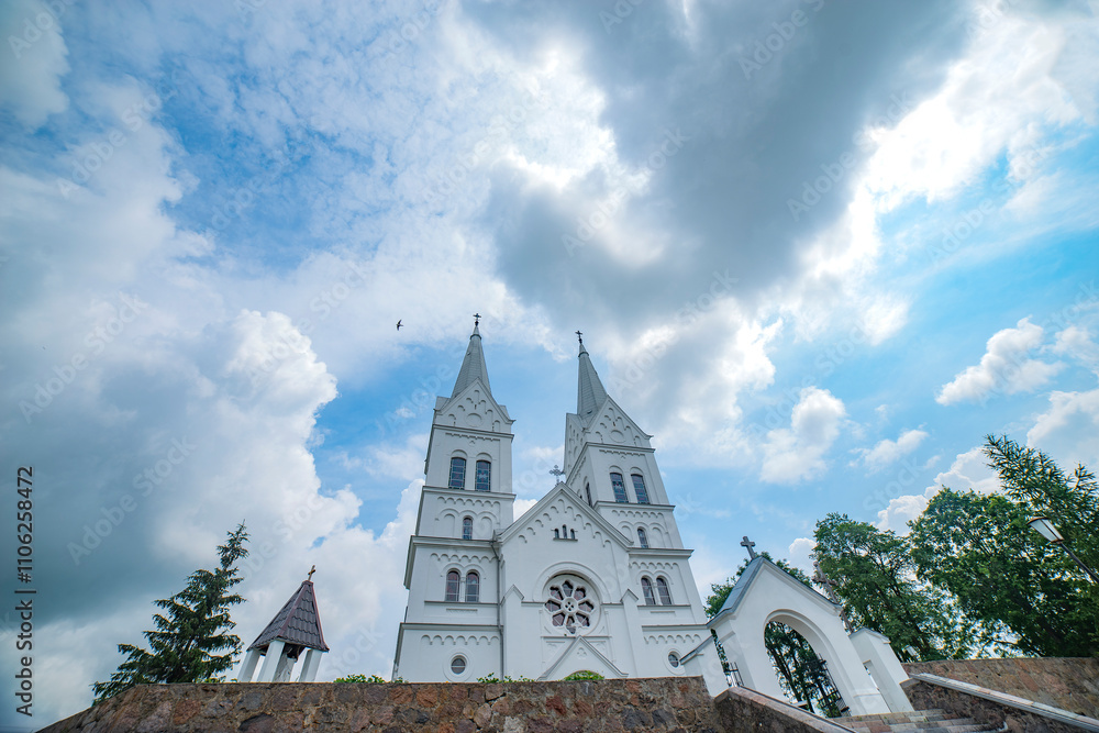 white catholic church. Braslav lakes