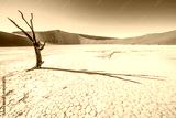 Trees in Deadvlei, or Dead Vlei, in Sossusvlei, in the Namib-Nau
