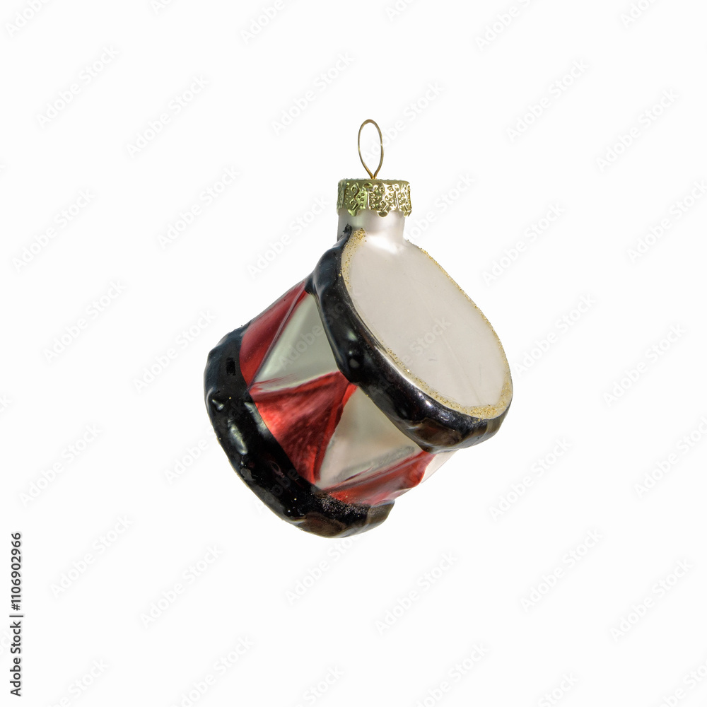 Glass Christmas tree toy in the form of a Drum. Retro style.
