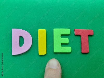 Diet subtitle or text with green background.