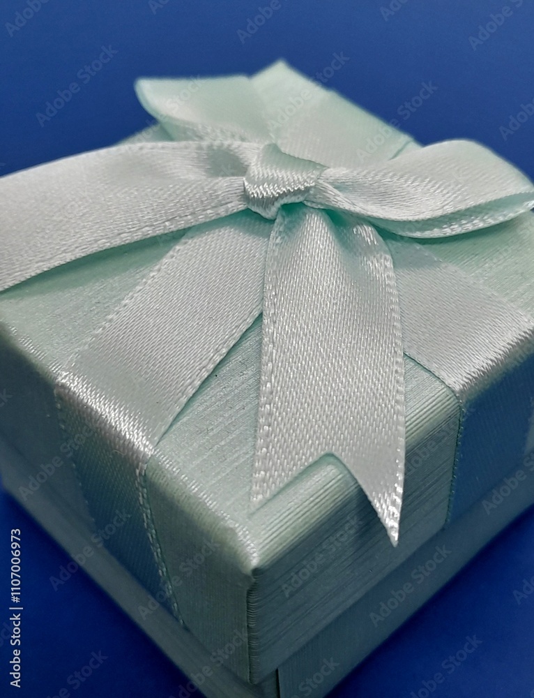 One blue gift box close up