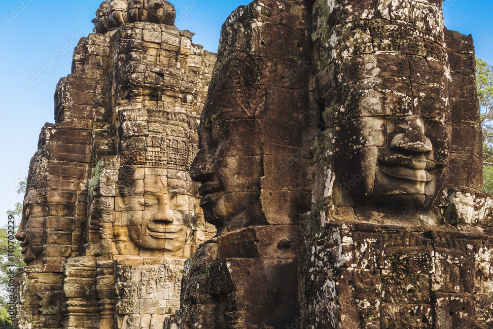 Stone faces at Bayon temple, Angkor, Siem Reap, Cambodia.