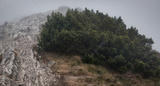 Mountain trail, road in the fog, mountain landscape, High Tatras.