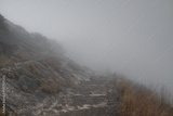 Mountain trail, road in the fog, mountain landscape, High Tatras.