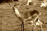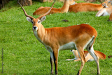 Cobo Lichi antelope, calmly resting and eating outdoors in nature