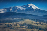 Morning in a Carpathian village on a mountain hill