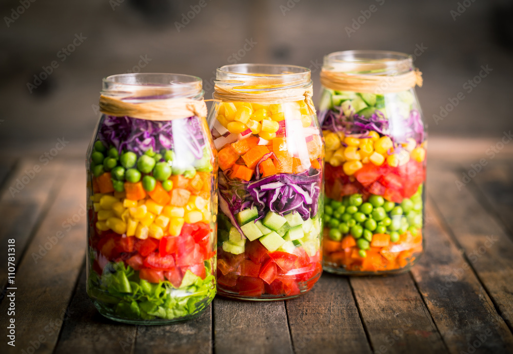 Fresh vegetable salad in a mason jar