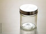 Home product photography minimalist glass jar with metallic lid storage ideas