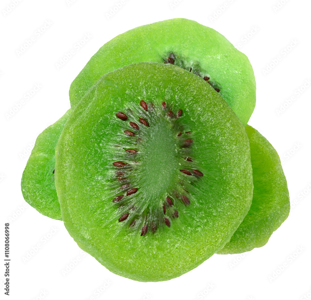 A pile of dry kiwi pieces on isolated background
