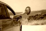 A happy guy in auto sea background