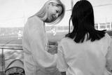 A mother and daughter share a joyful moment at an outdoor soccer field, bonding over a sunny day. The setting reflects warmth, family connection, and the enjoyment of sports activities.