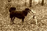 black and gold Hovie dog hovawart and a little doggy bitch