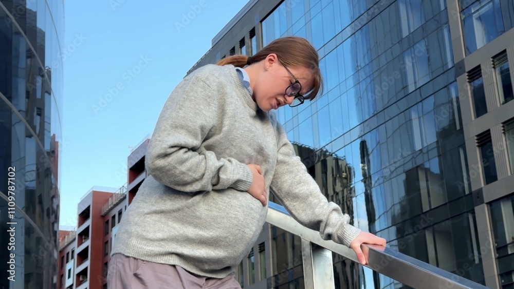 Young tired pregnant woman suffering from pain in lower back and feel bad, unhealthy