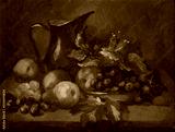 A still life with a jug and fruits is an oil painting on canvas. Oil painting. A picture with ripe ones. Fruit.