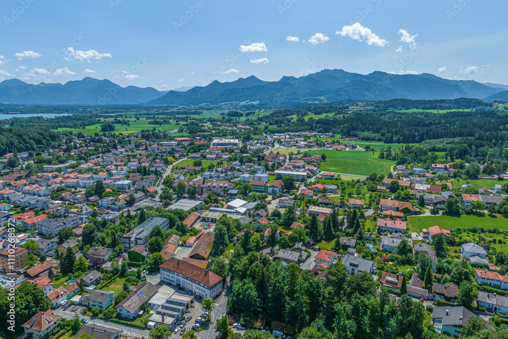 Die Marktgemeinde Prien am Chiemsee am oberbayerischen Alpenrand von oben