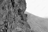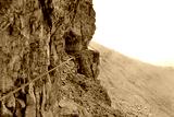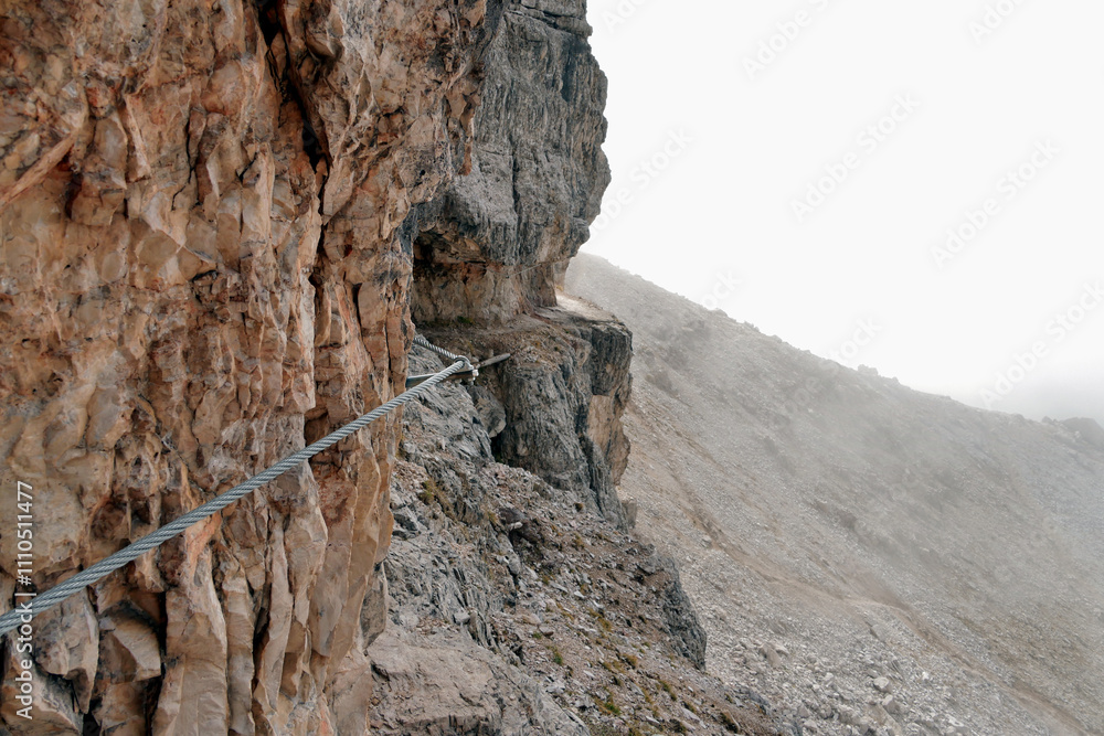 Via ferrata secured route in the Italian Dolomites autumn landscape