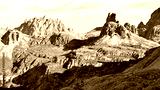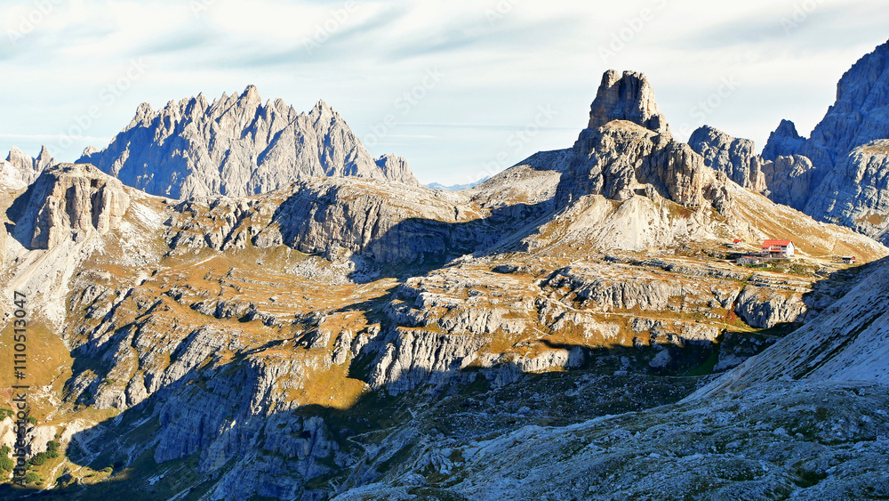 Limestone mountains rock towers in the Italian Dolomites autumn landscape