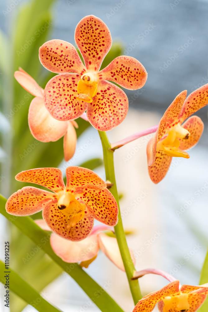 Orange Mokara orchid in farm.