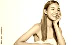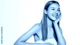 A cheerful young woman flashes a bright smile against a white backdrop, showcasing her clear, radiant skin and natural beauty. Perfect for wellness, skincare, and positivity concepts