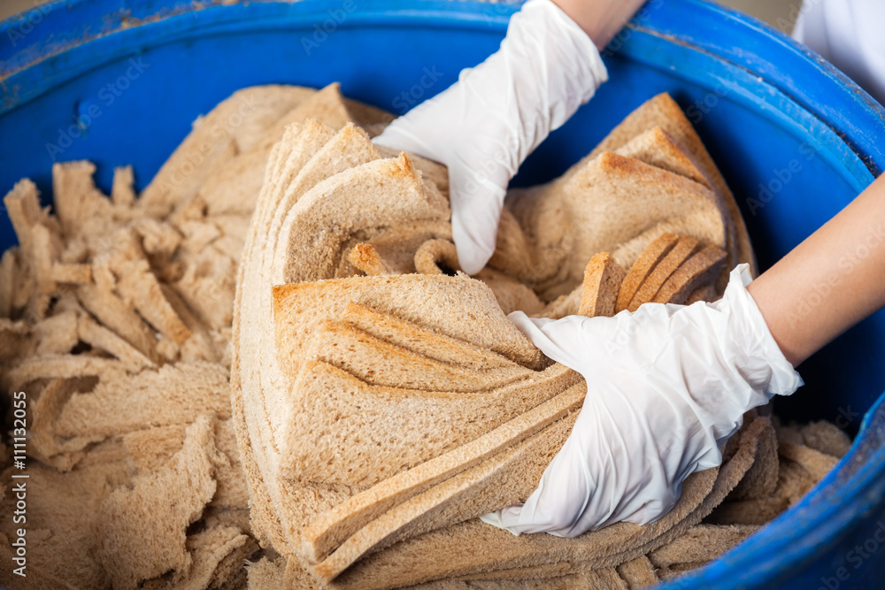 Baker's Hands Discarding Bread Waste In Garbage Bin