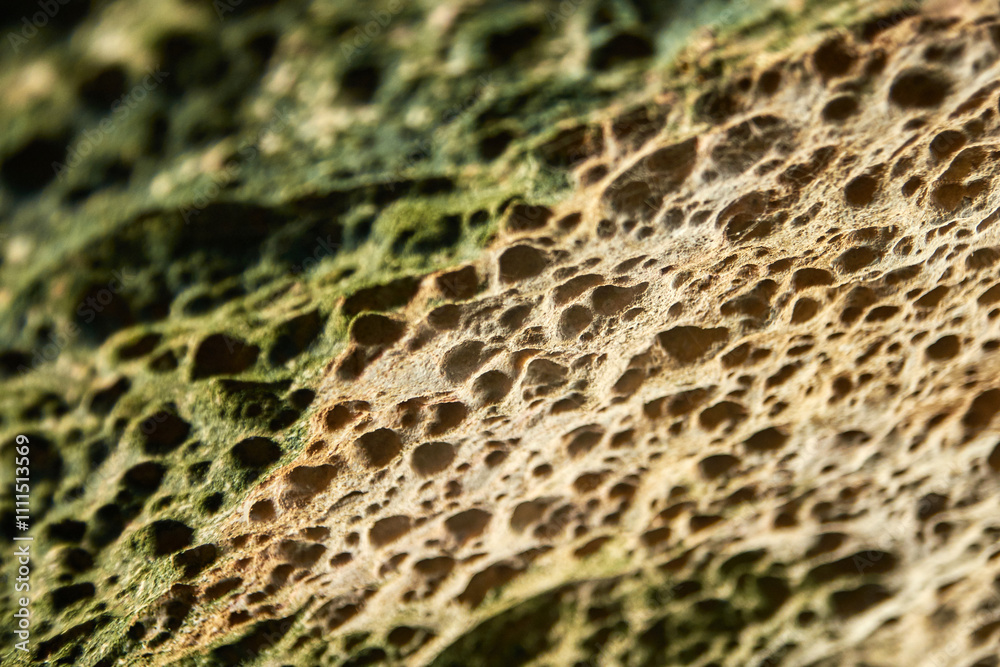 Close up of natural porous texture in organic material featuring intricate patterns and colors for design inspiration.