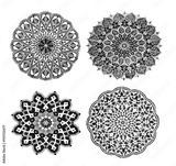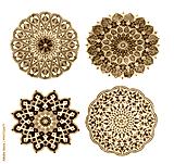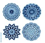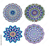 Set of round detail of ancient mosaic walls with floral and geometric ornaments. Collection of ceramic circles with traditional iranian tile decorations. Isolated on white background
