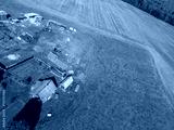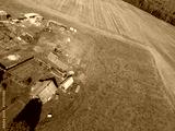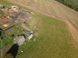 Top view of the village, landscape and houses, forest and fields from the height of a flying drone.