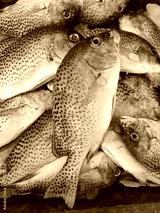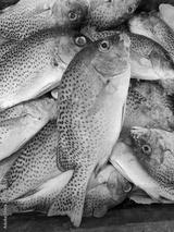 Fish market. Fresh fish on the counter. Day. Autumn. Egypt.