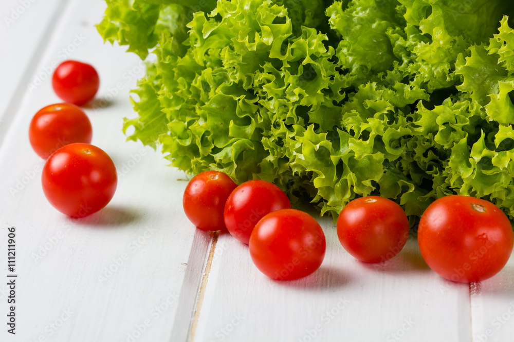 Tomatoes and lettuce, white background