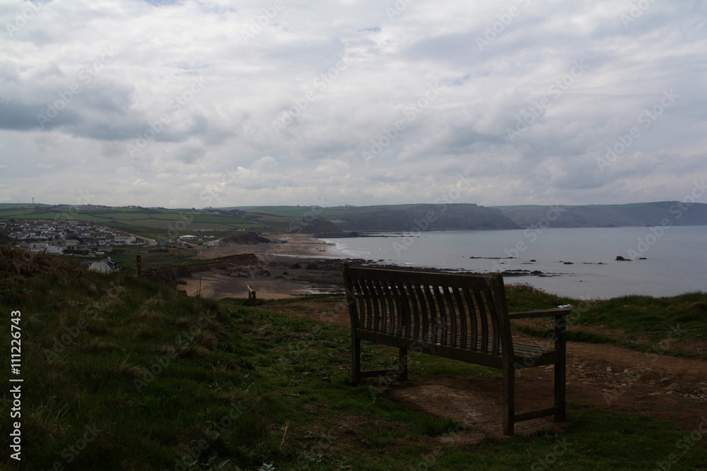 Bench over looking the coast neaar Bude, Cornwall
